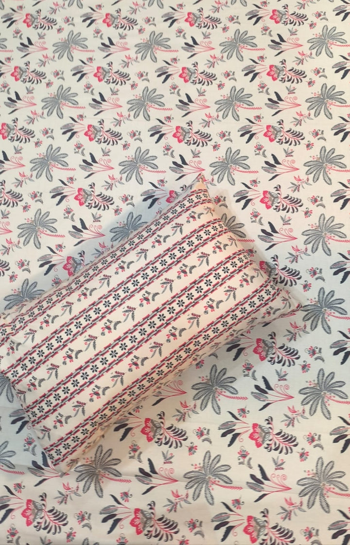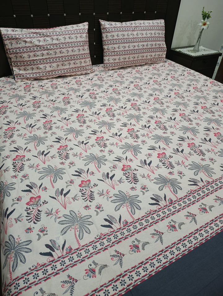 Pure Cotton Bedsheet - Cream Ivory Floral