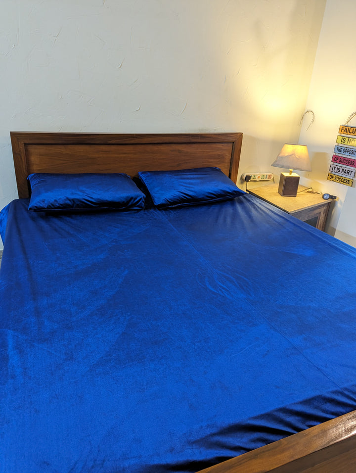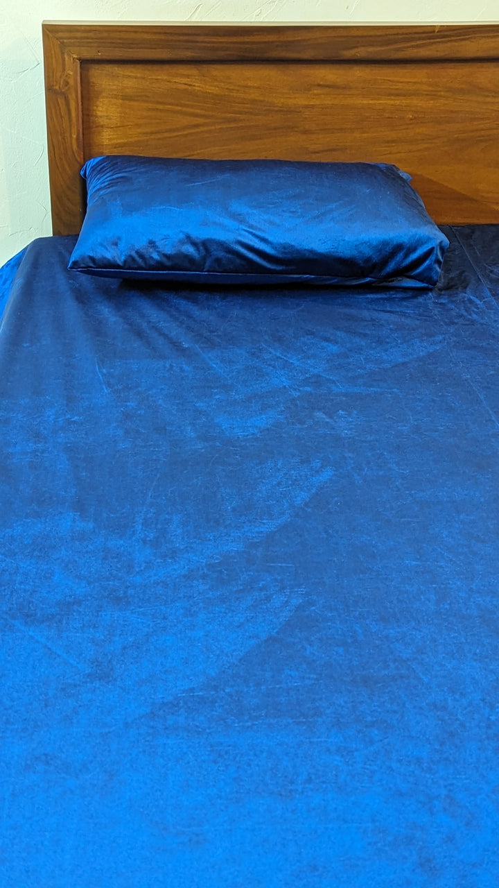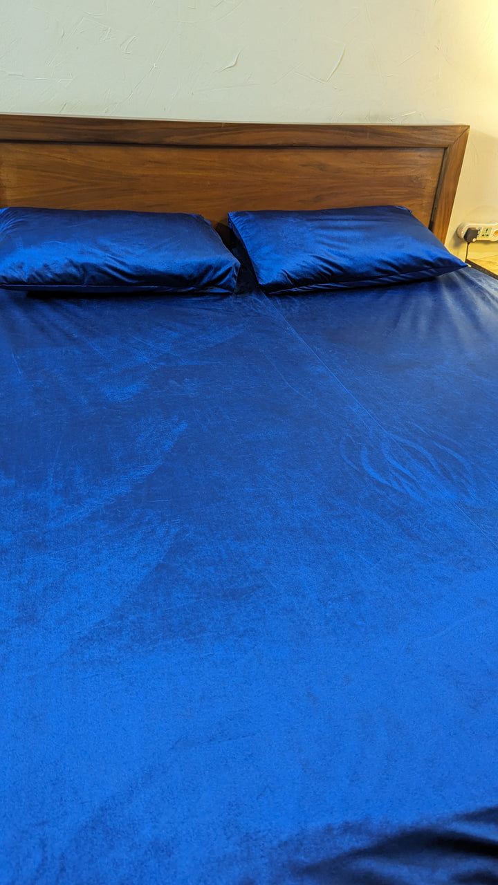 Velvet Fitted Bedsheets- Blue Glossy