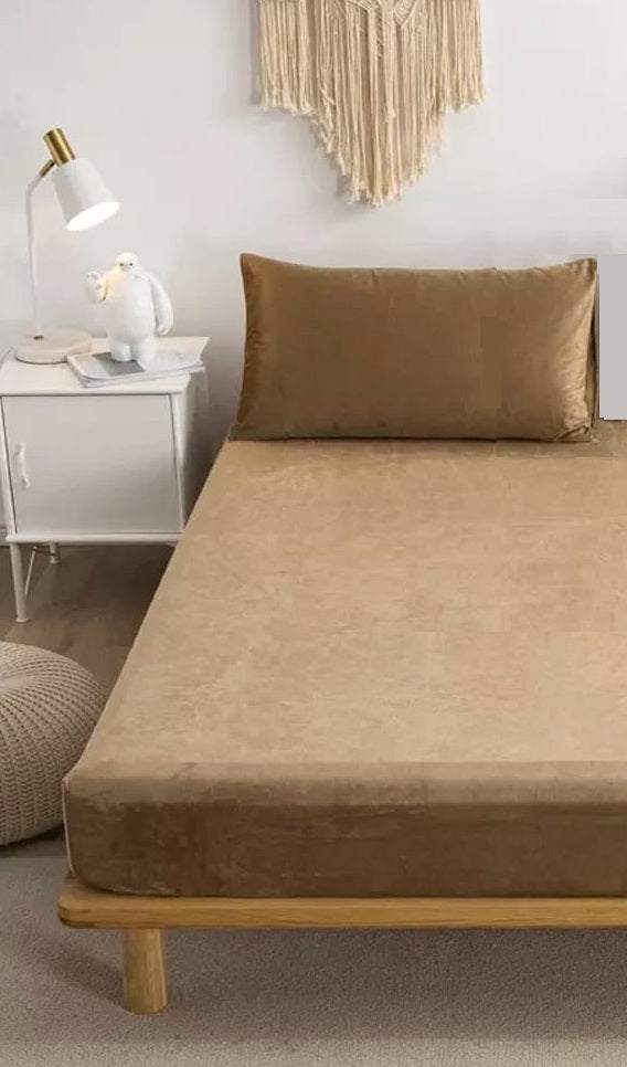 Velvet Fitted Bedsheets- Light Brown (Skin)